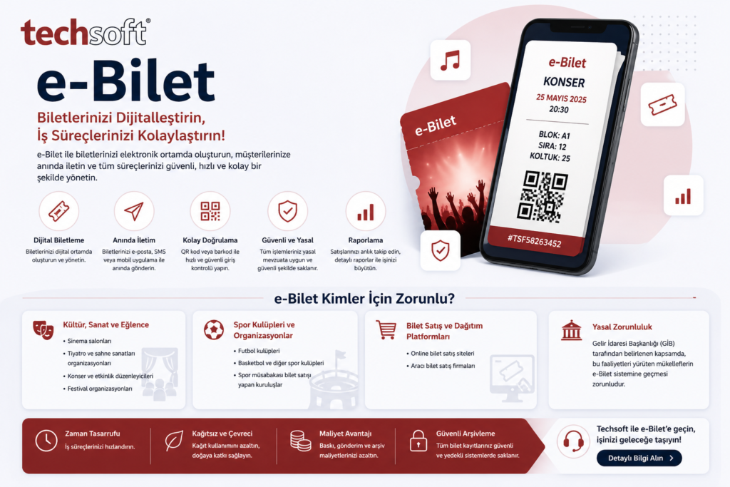 e-Bilet, etkinlik, ulaşım ve organizasyonlar için düzenlenen biletlerin elektronik ortamda oluşturulmasını, iletilmesini ve saklanmasını sağlayan dijital belge sistemidir.