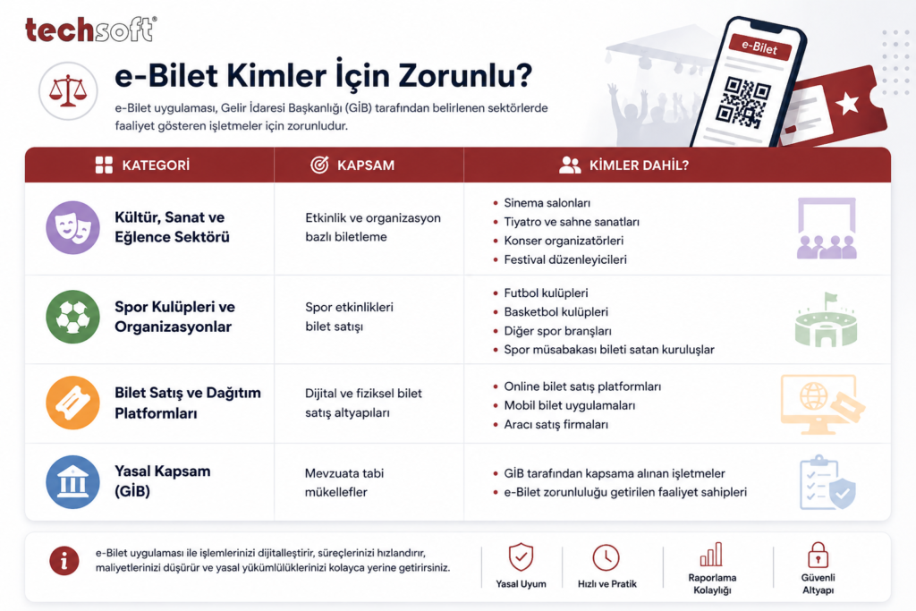 e-Bilet uygulaması aşağıdaki sektör ve işletmeler için zorunludur: