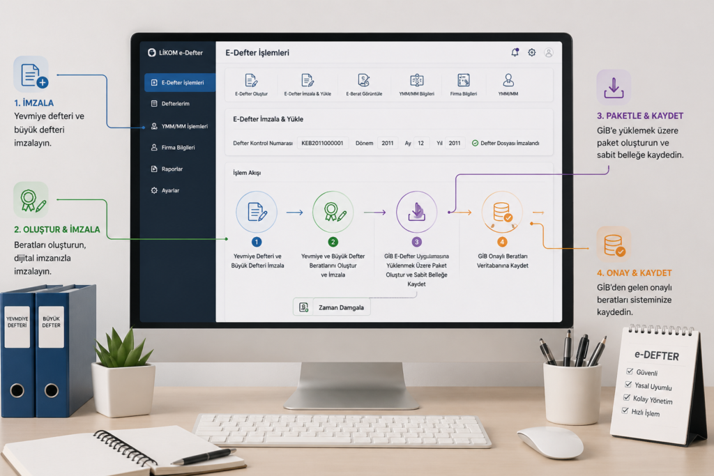e-Defter uygulaması için kullanılacak yazılımın Gelir İdaresi Başkanlığı’nca onaylanmış ve Uyumlu yazılımlar sayfasında yer alan bir yazılım olması gerekmektedir. Likom Yazılım e-Defter Uygulaması da Gelir İdaresi Başkanlığı’nca onaylanmış bir yazılımdır.