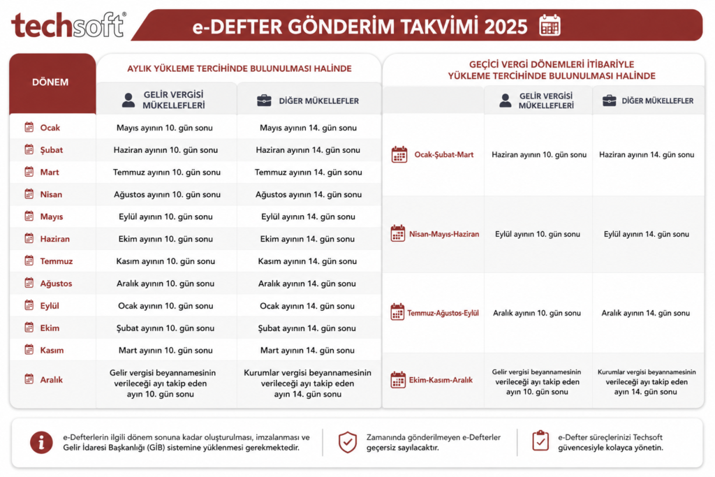 - Geçici vergi dönemlerine ait ayların e-defter beratları geçici vergi beyannamesinin verildiği ay sonuna kadar yüklenmelidir.